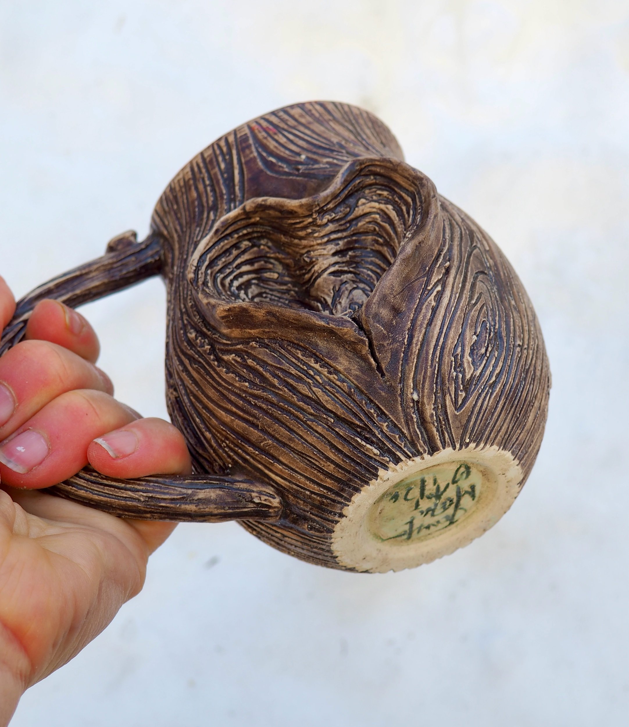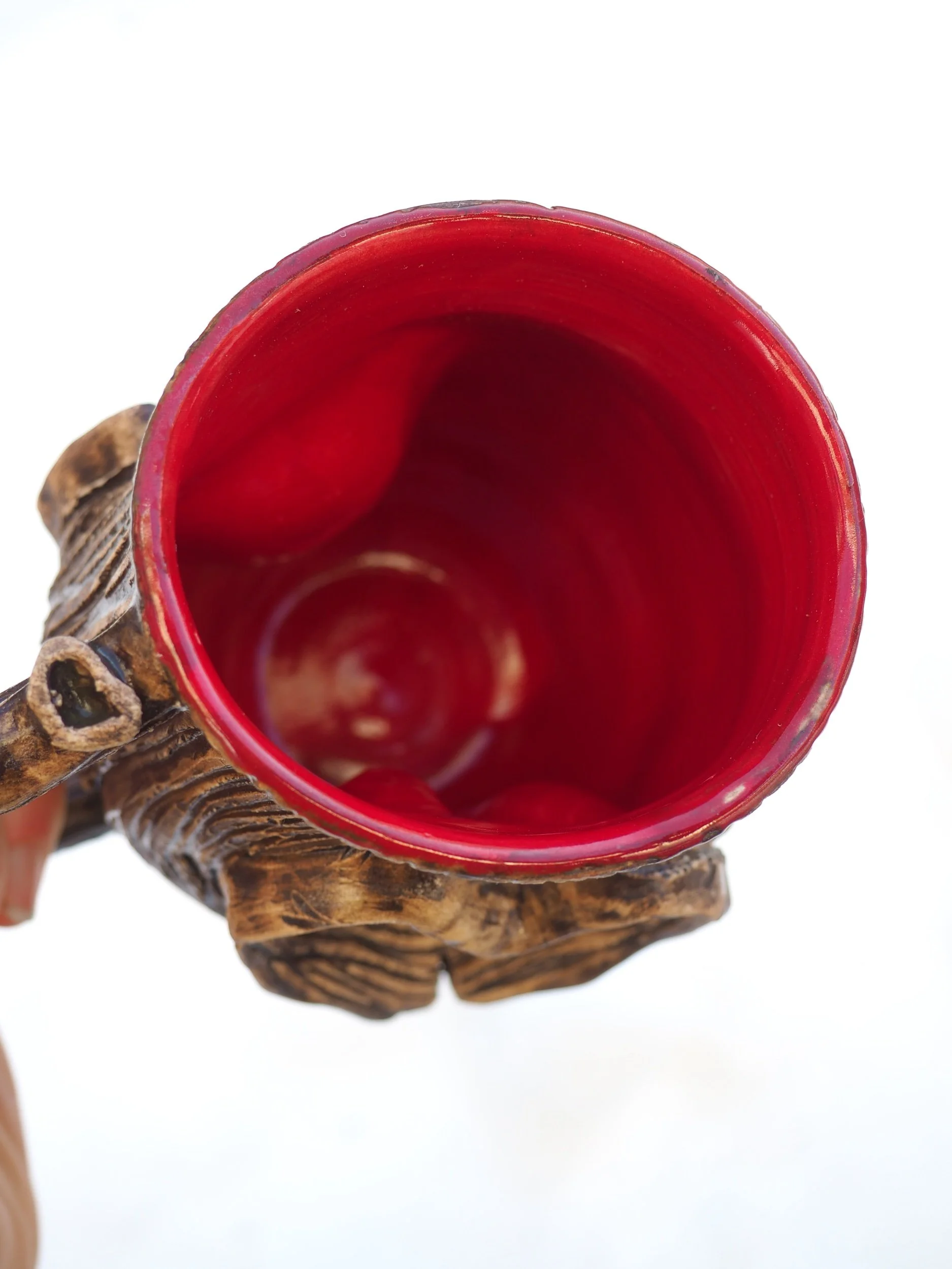 The artist is very much inspired by her time spent hiking outdoors. One of her favorite parts of nature she likes to highlight is the texture and shapes that trees can create. She wanted to focus on some particular trees that create heart shaped burls and knots. She was fascinated with the unique texture and formations of these trees. These limited edition mugs are paired with a bright red interior that is a rarity in the artist work.