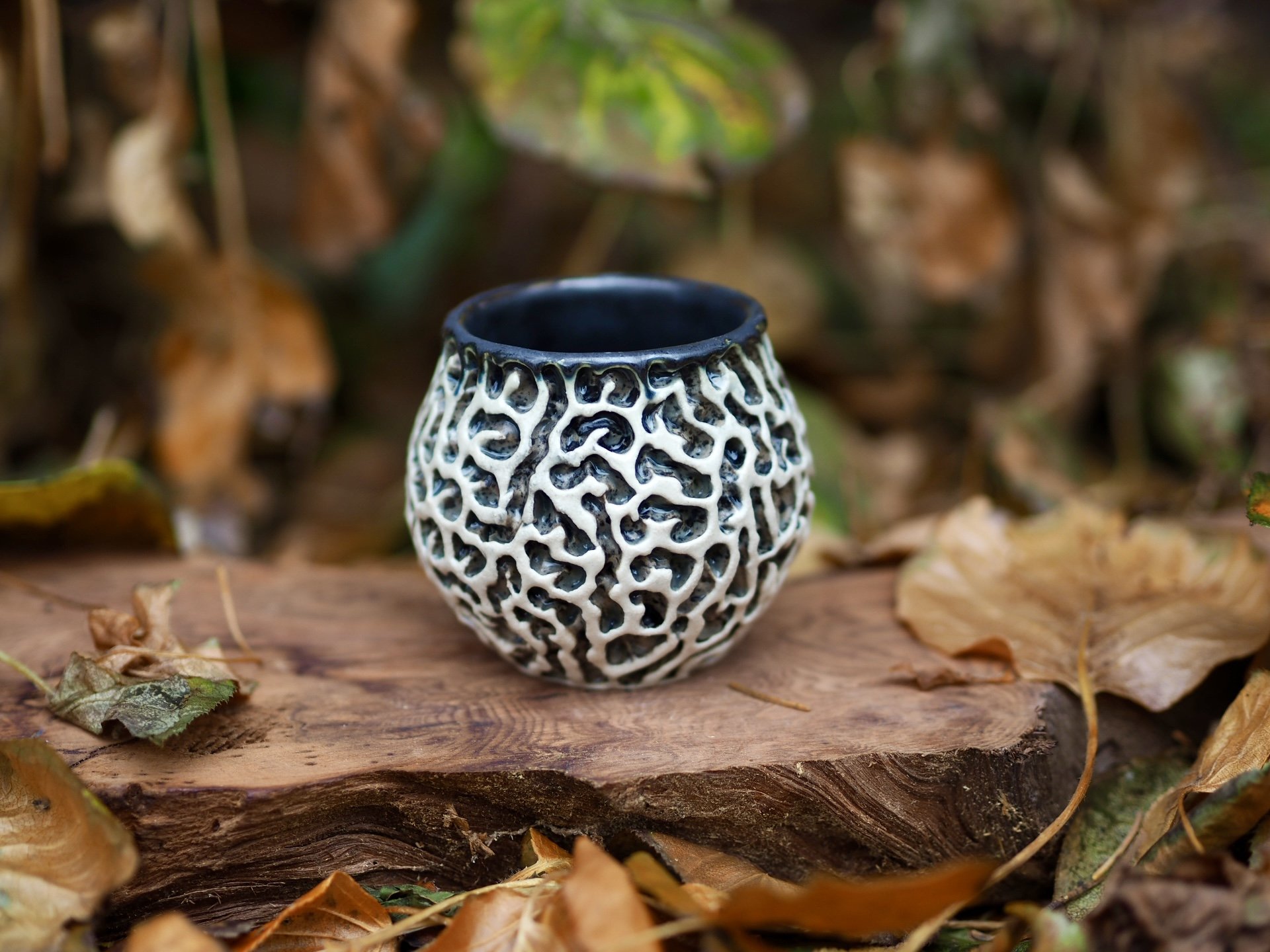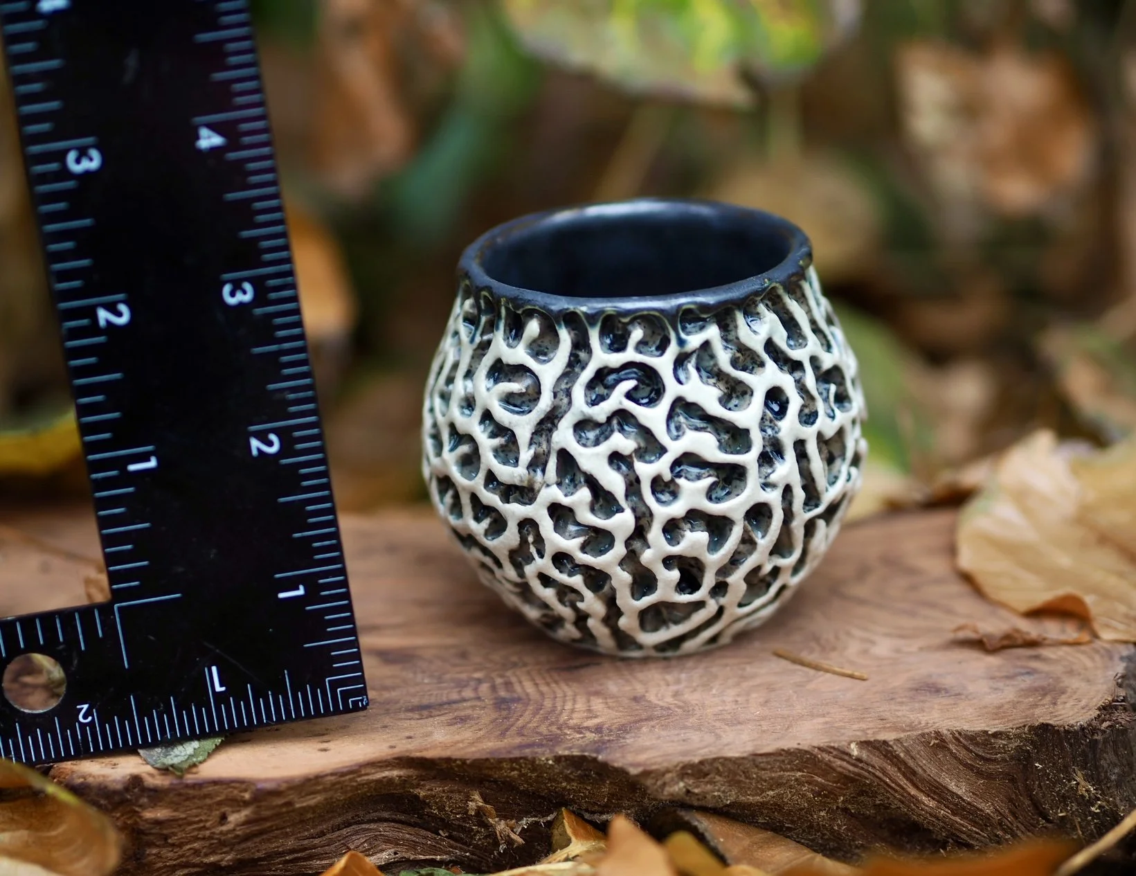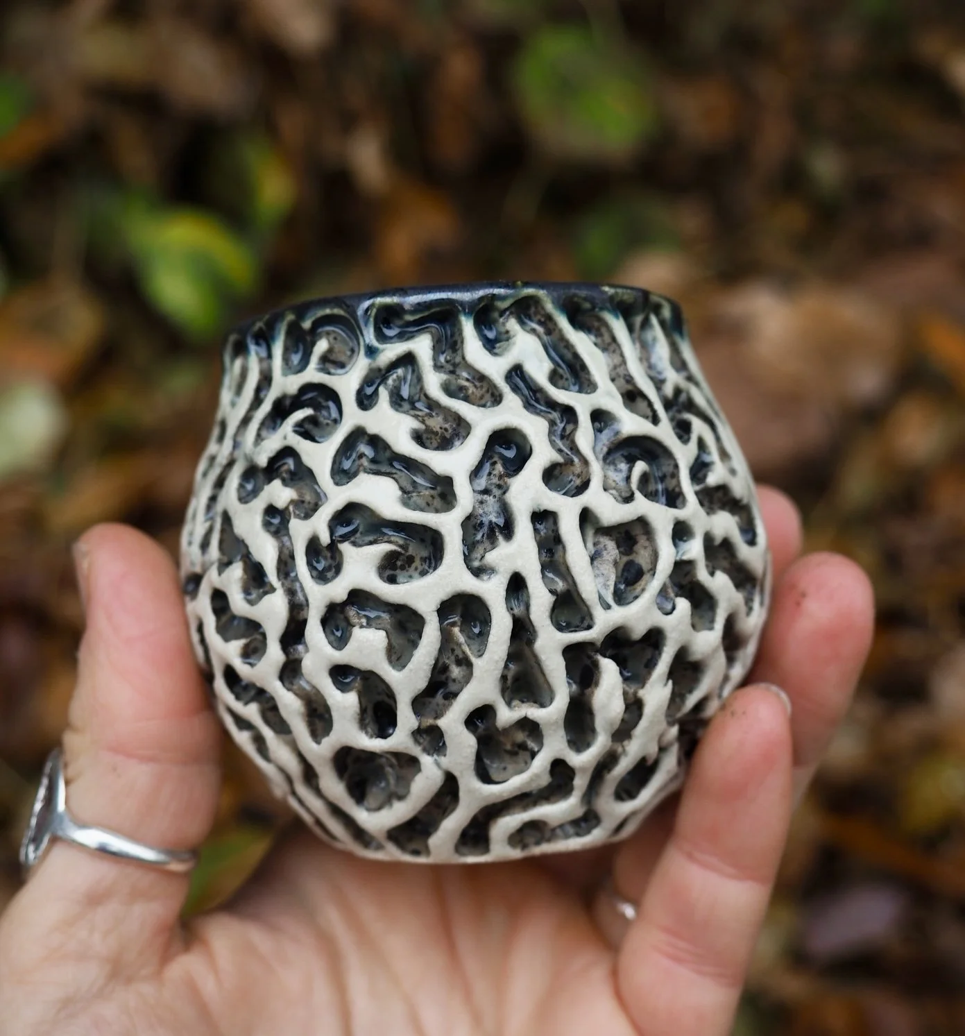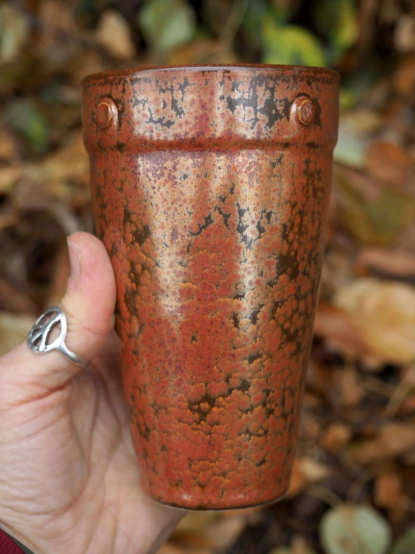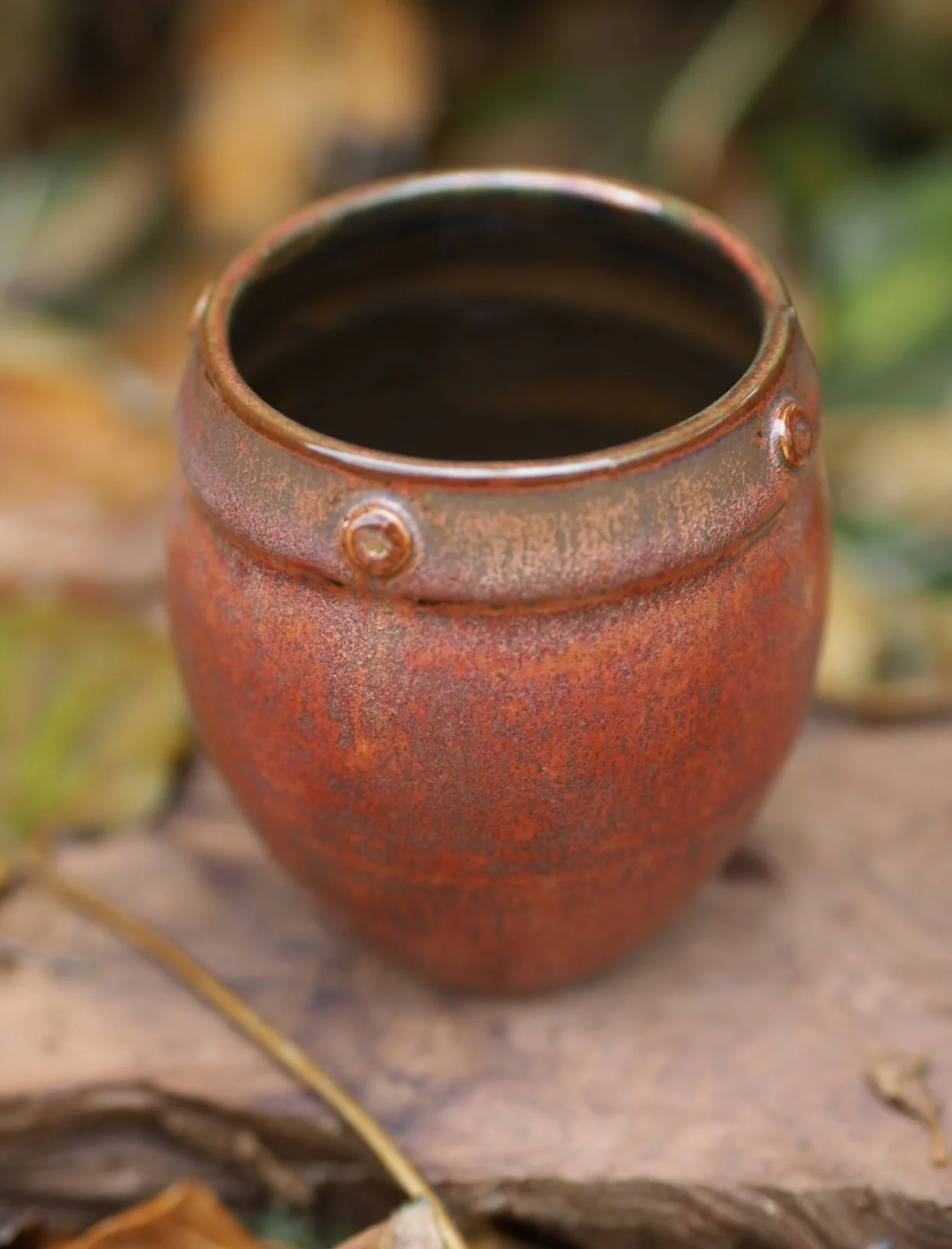 Each mug is individually handmade by the artist with little different details. They may have different "rivets" or "screws" in them!