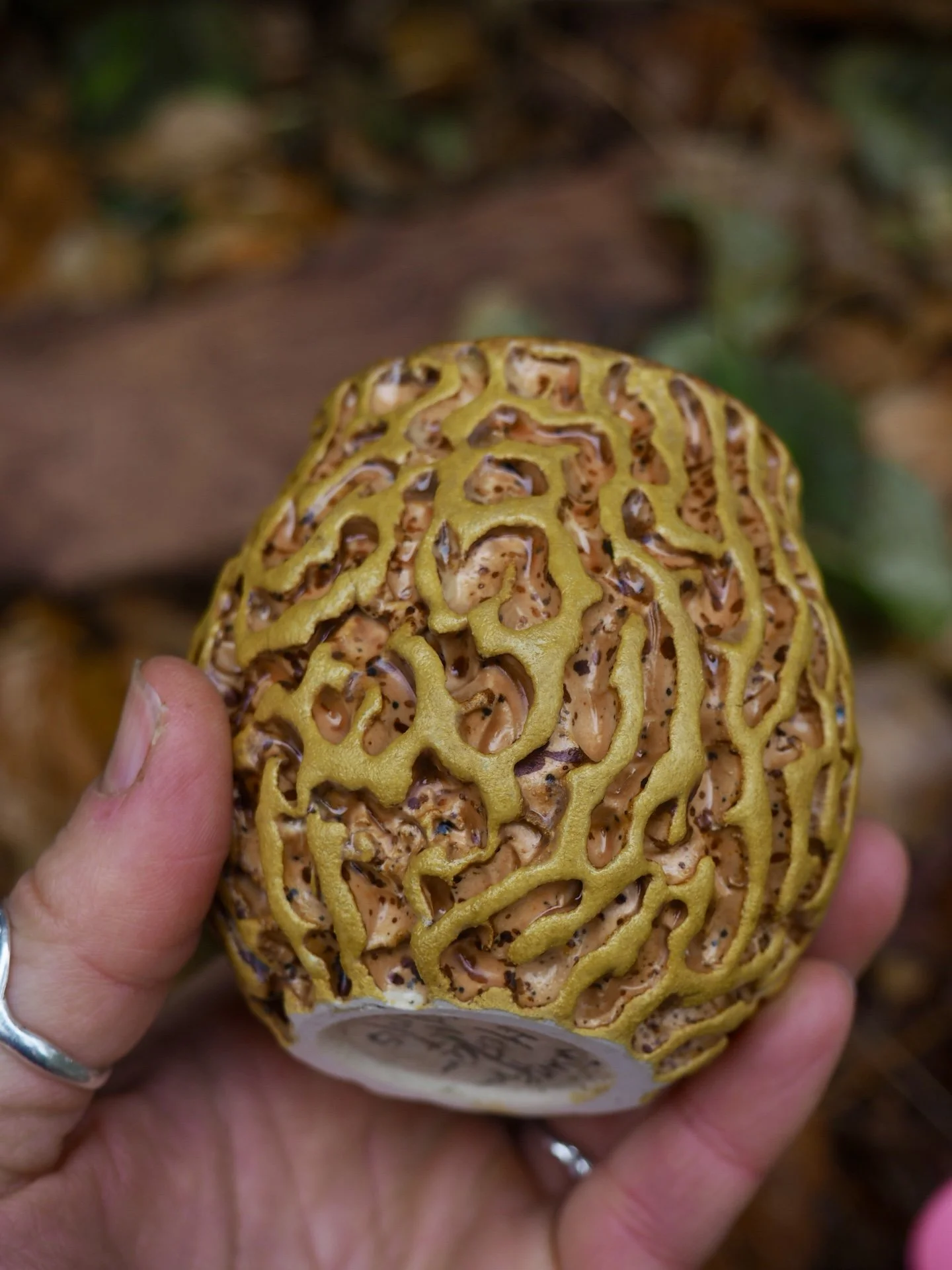 The glaze used is a very specialized color that requires many testing to create this beautiful copper coloring- what a beauty!