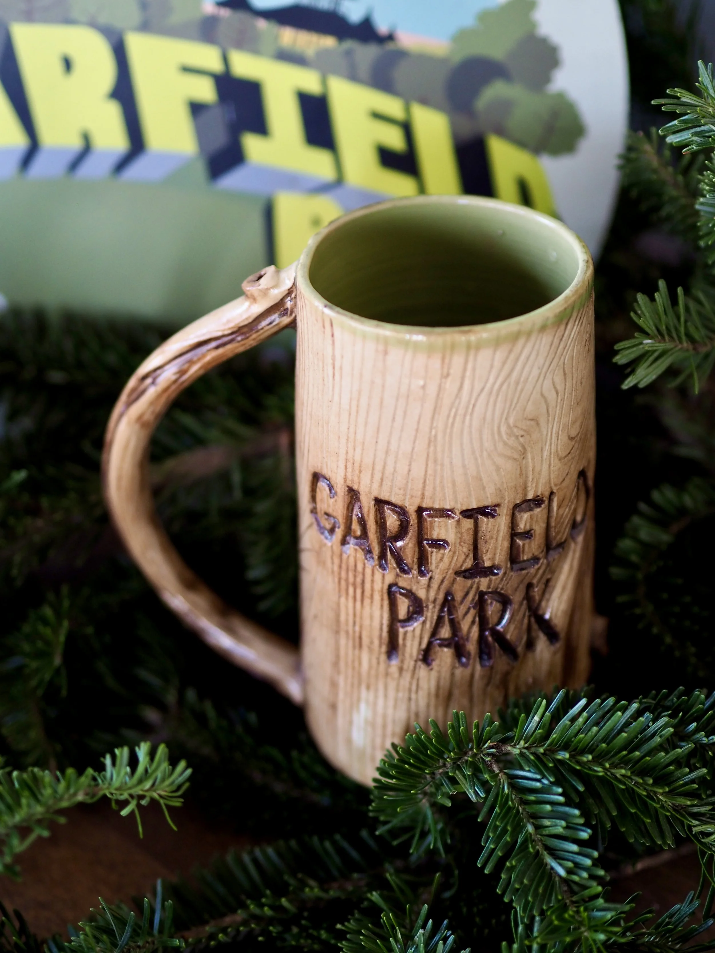 Garfield park is a location where the artist who crafts each of these mugs lives and works and each mug from this series is inspired by one of the oak trees in the park.